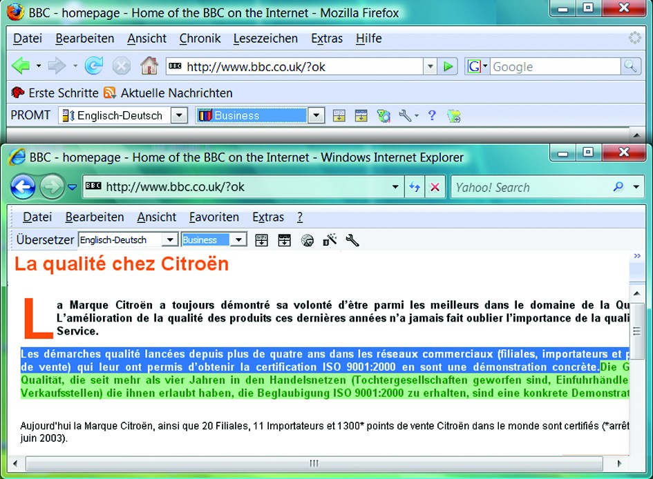 Screenshots zum Programm Promt Office Französisch <=> Deutsch - Eine Shareware Software zum Download bei den DownloadPiloten